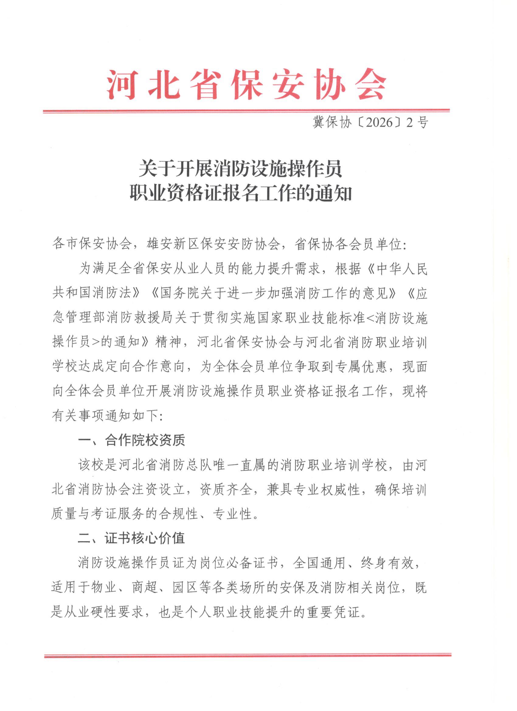 关于开展消防设施操作员职业资格证报名工作的通知